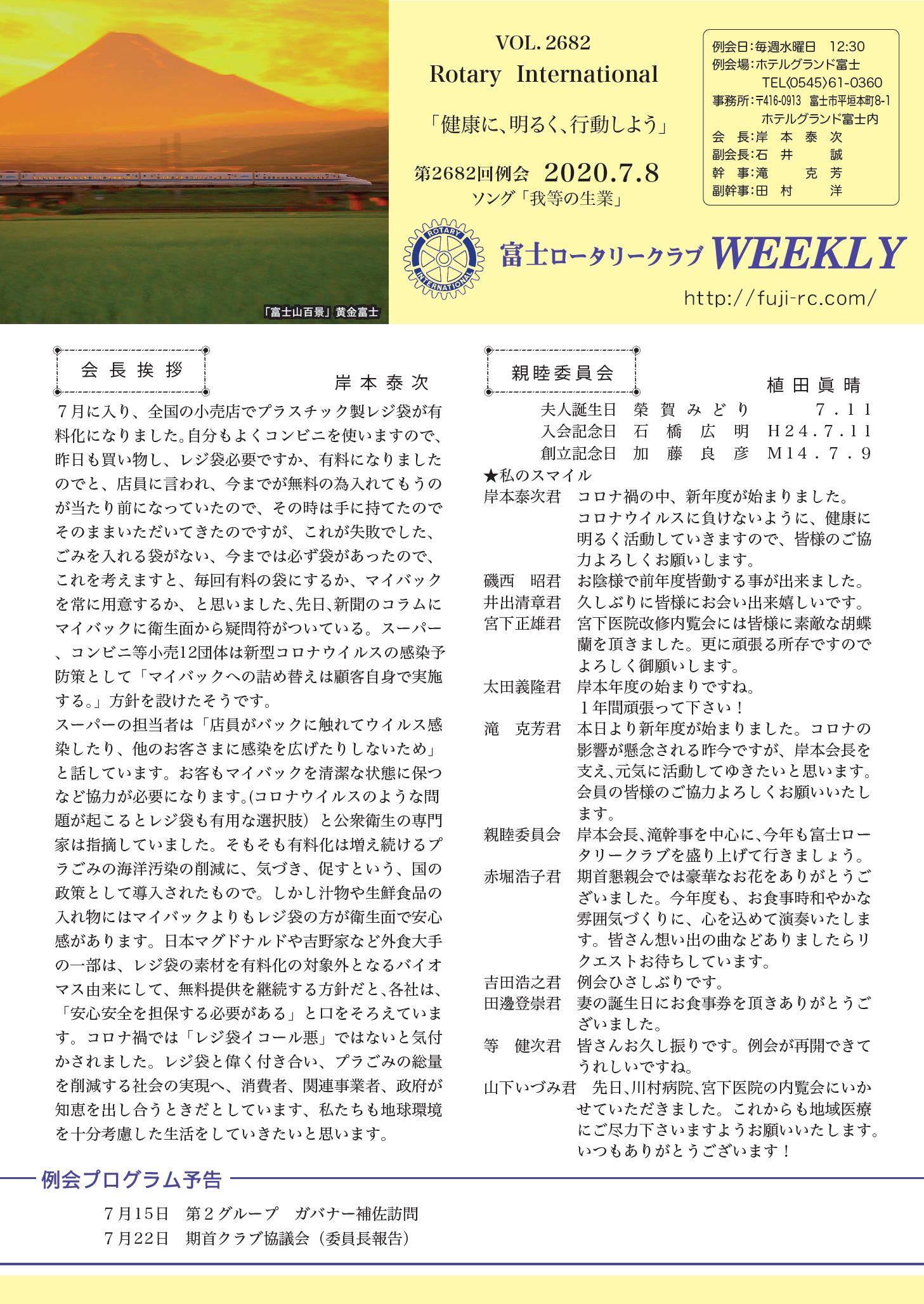第2683回 例会 2020.7.15 |