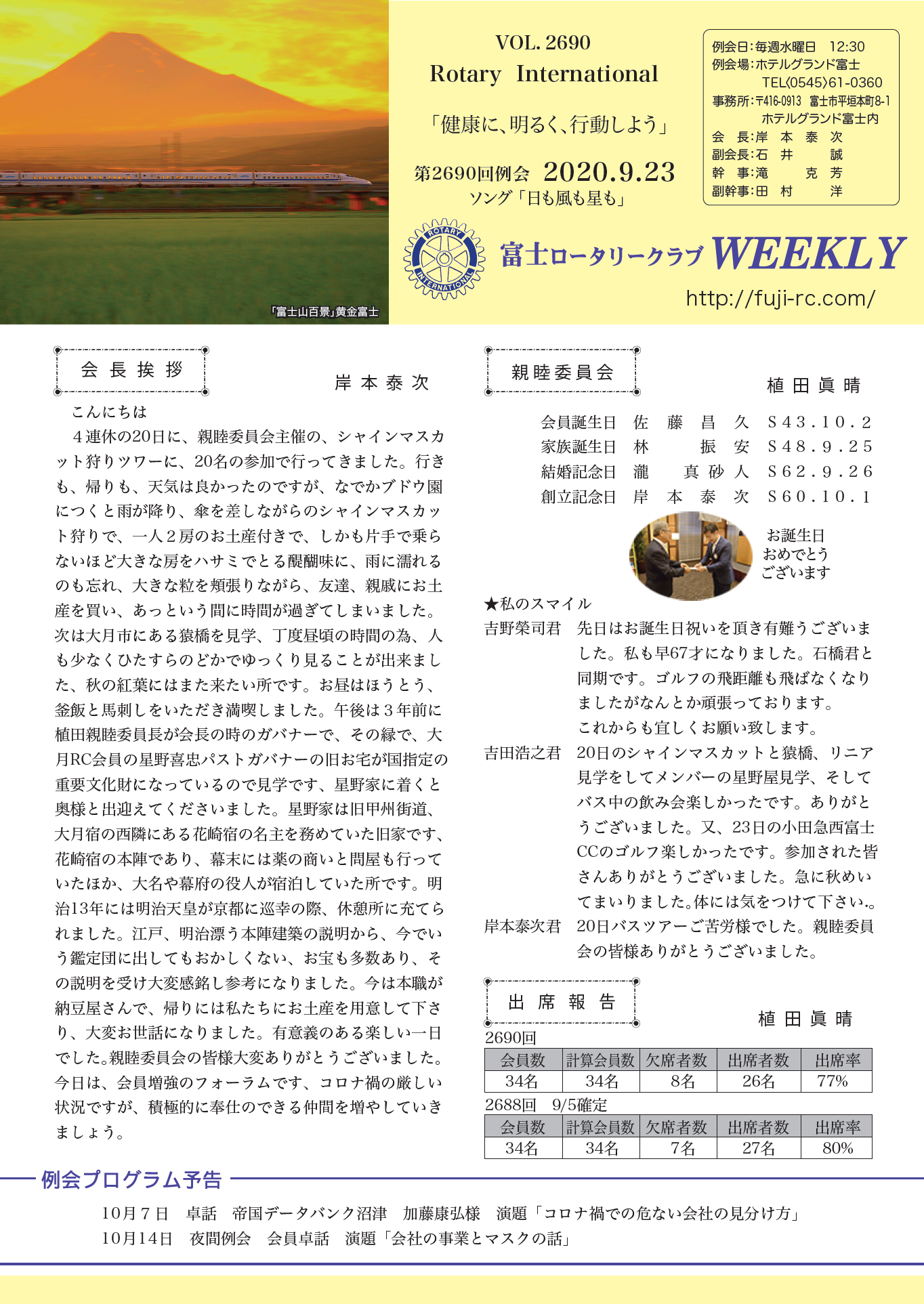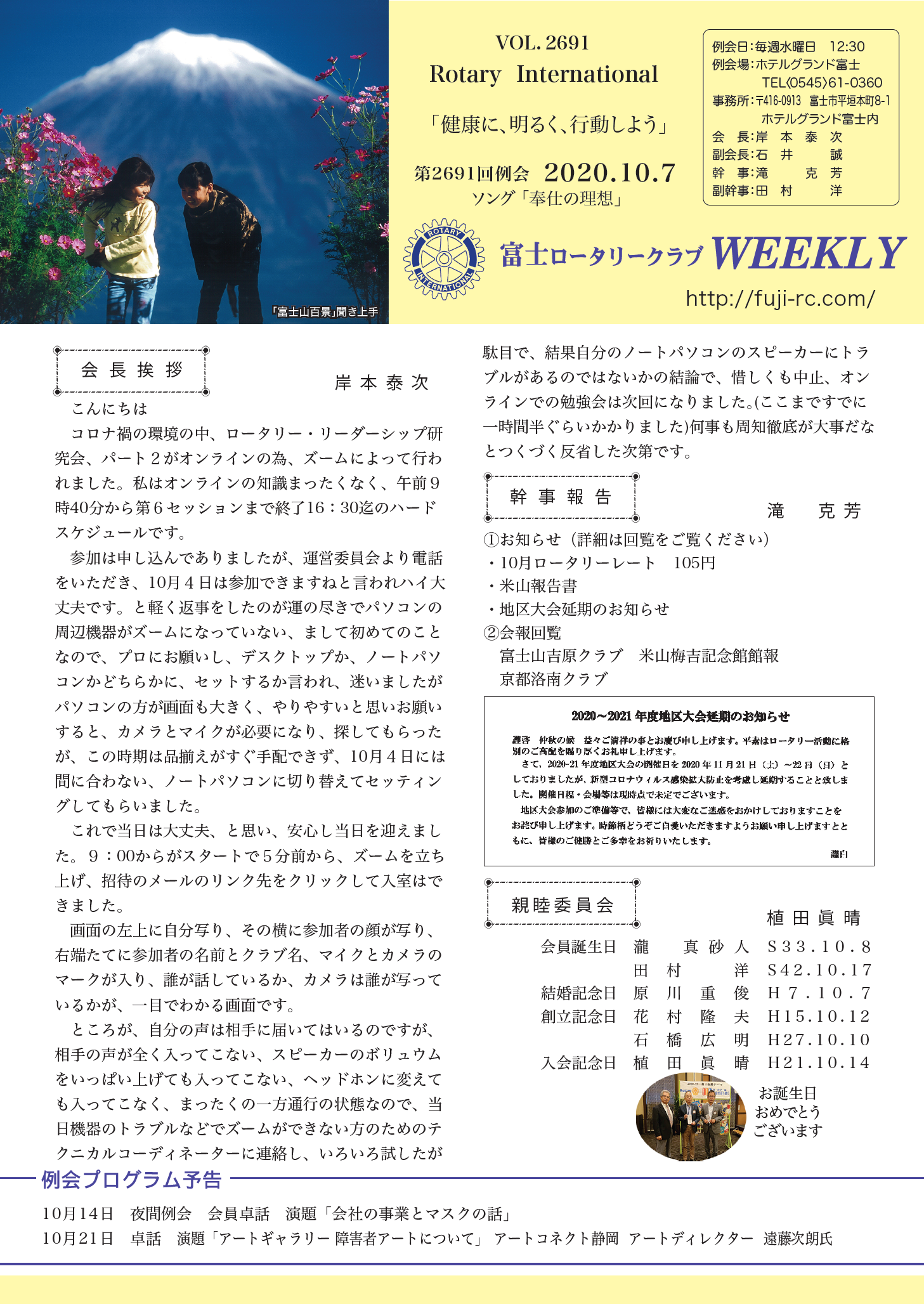 第2692回 例会 2020.10.14 |