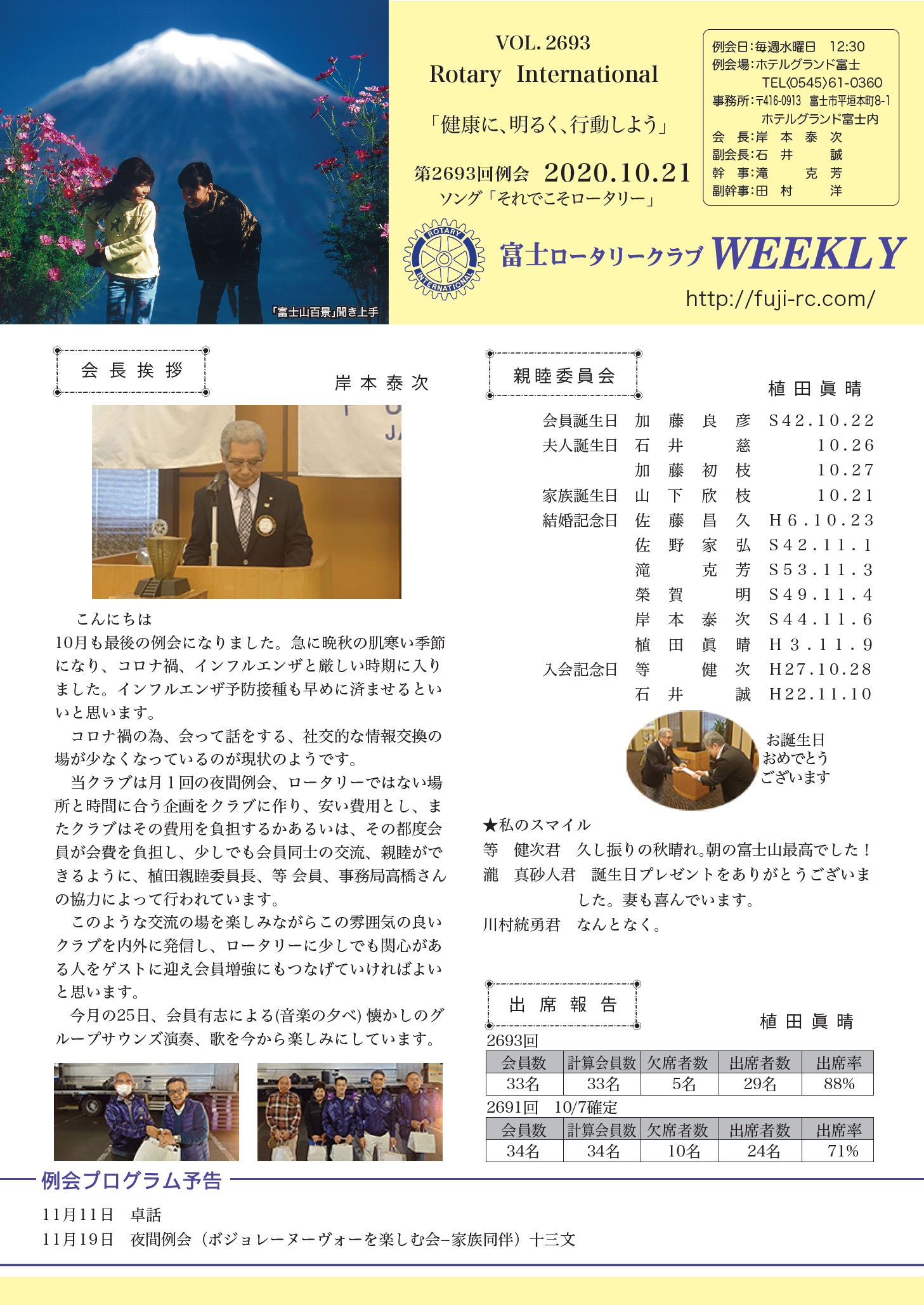 第2693回 例会 2020.10.21 |