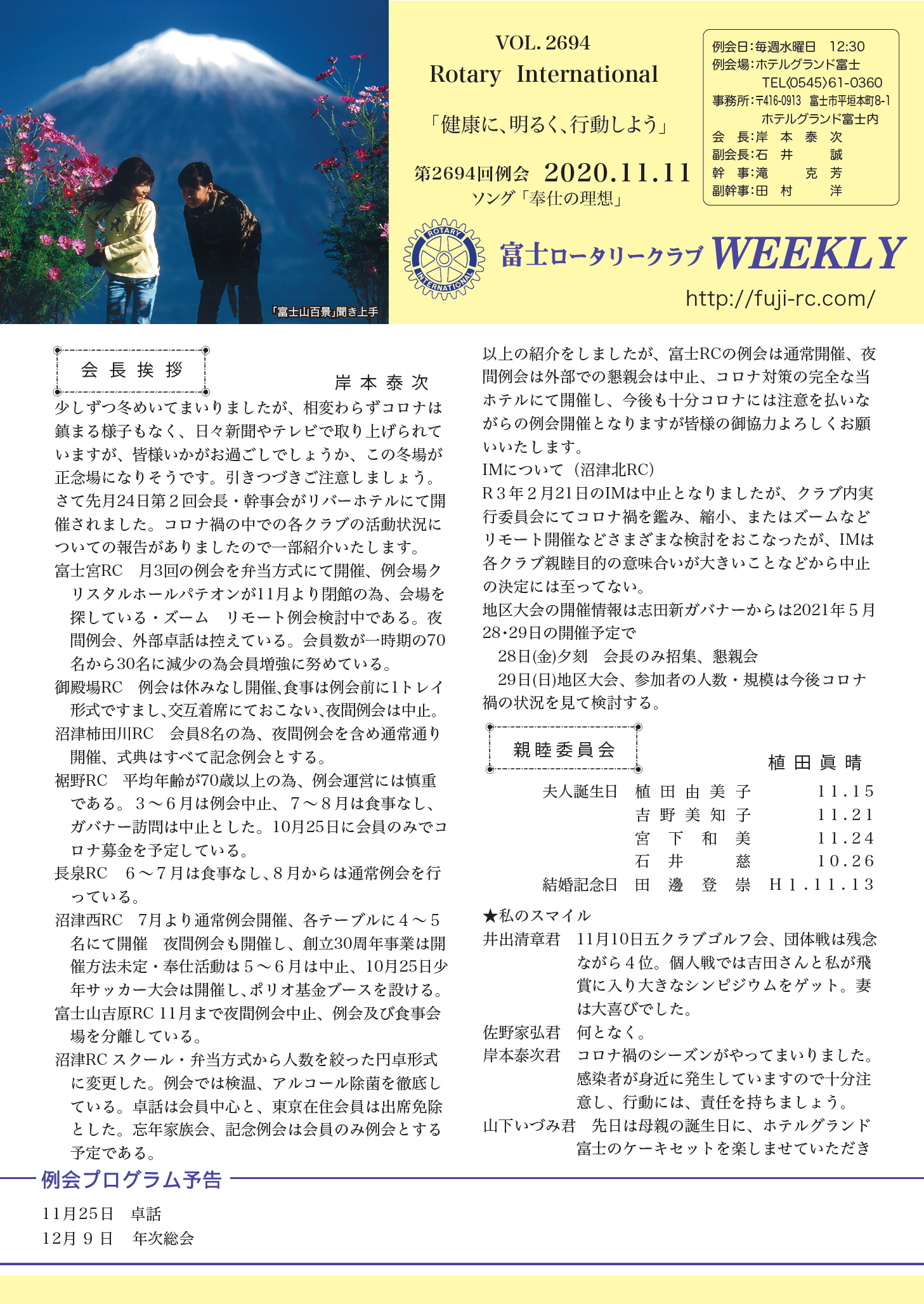 第2695回 例会 2020.11.18 |