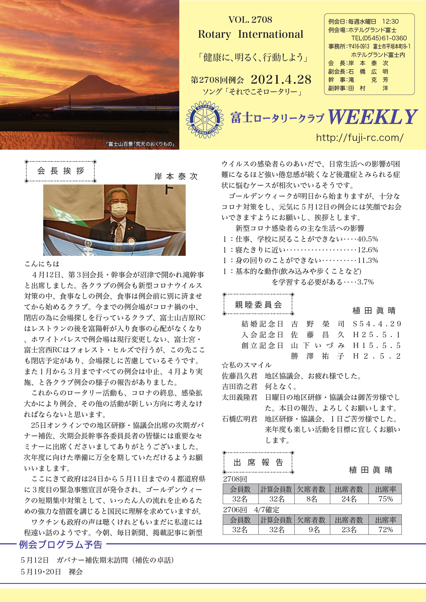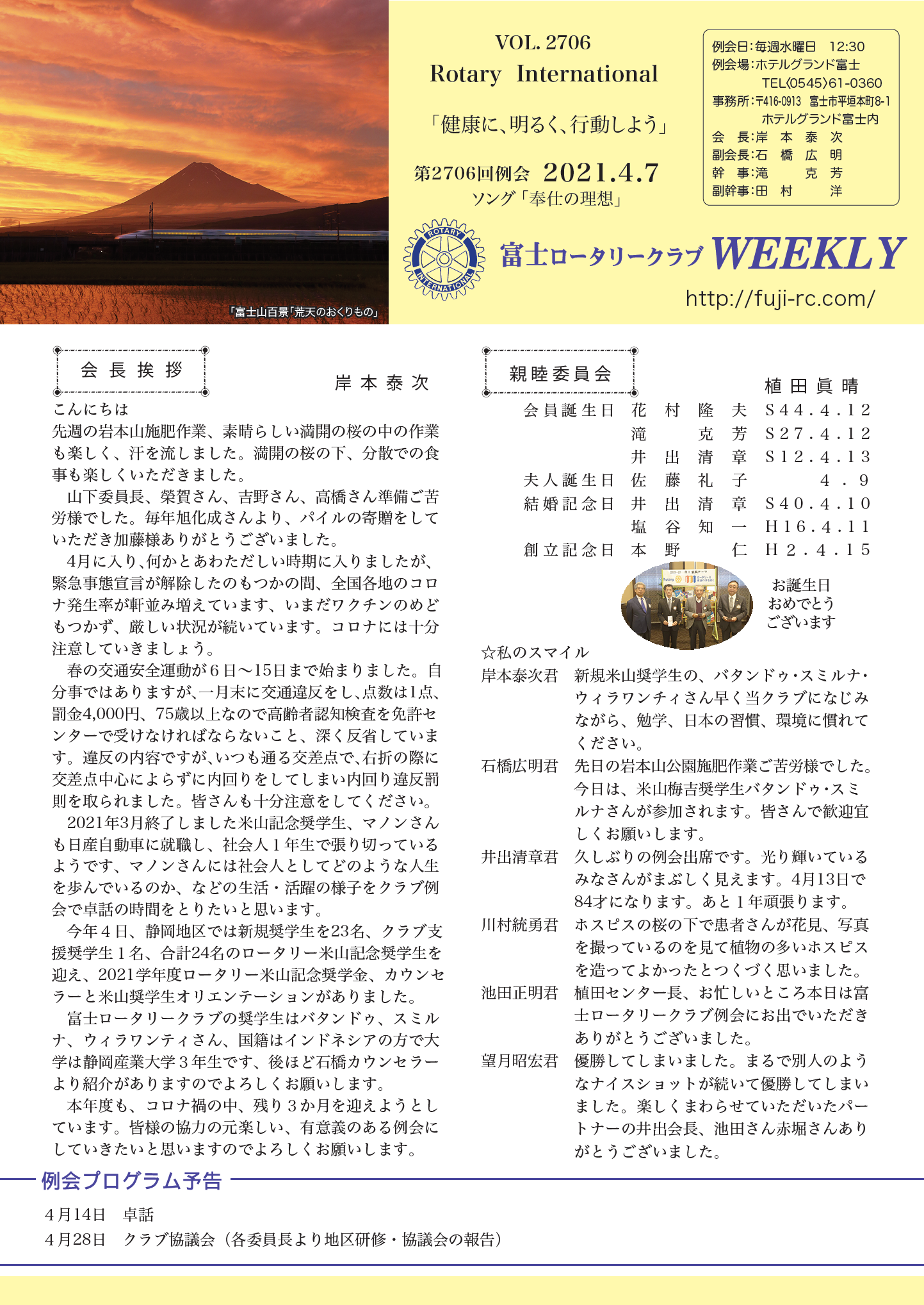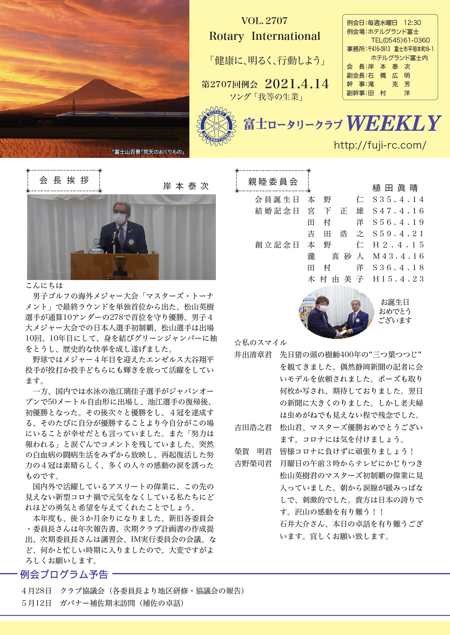 第2707回 例会 2021.4.14 |