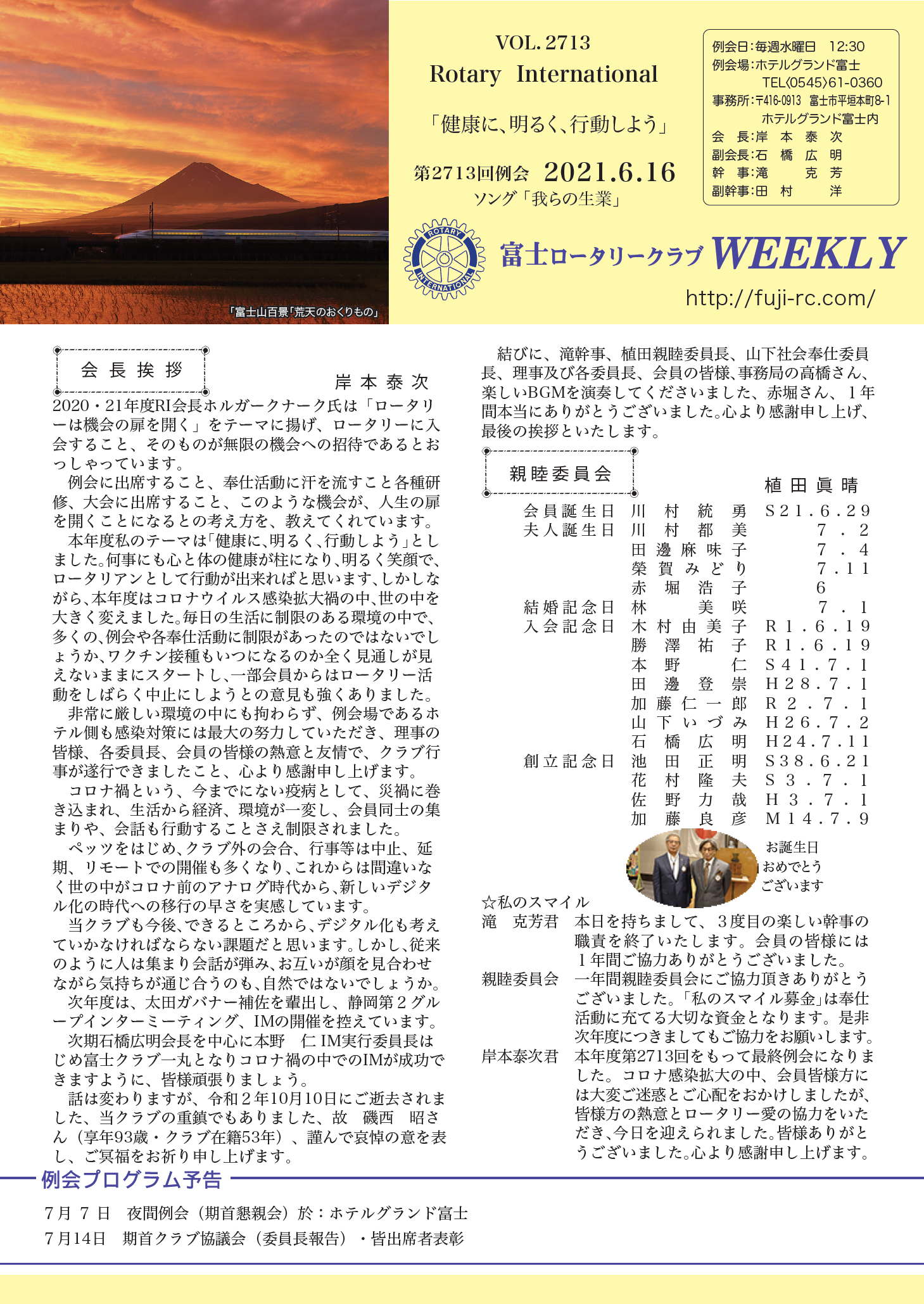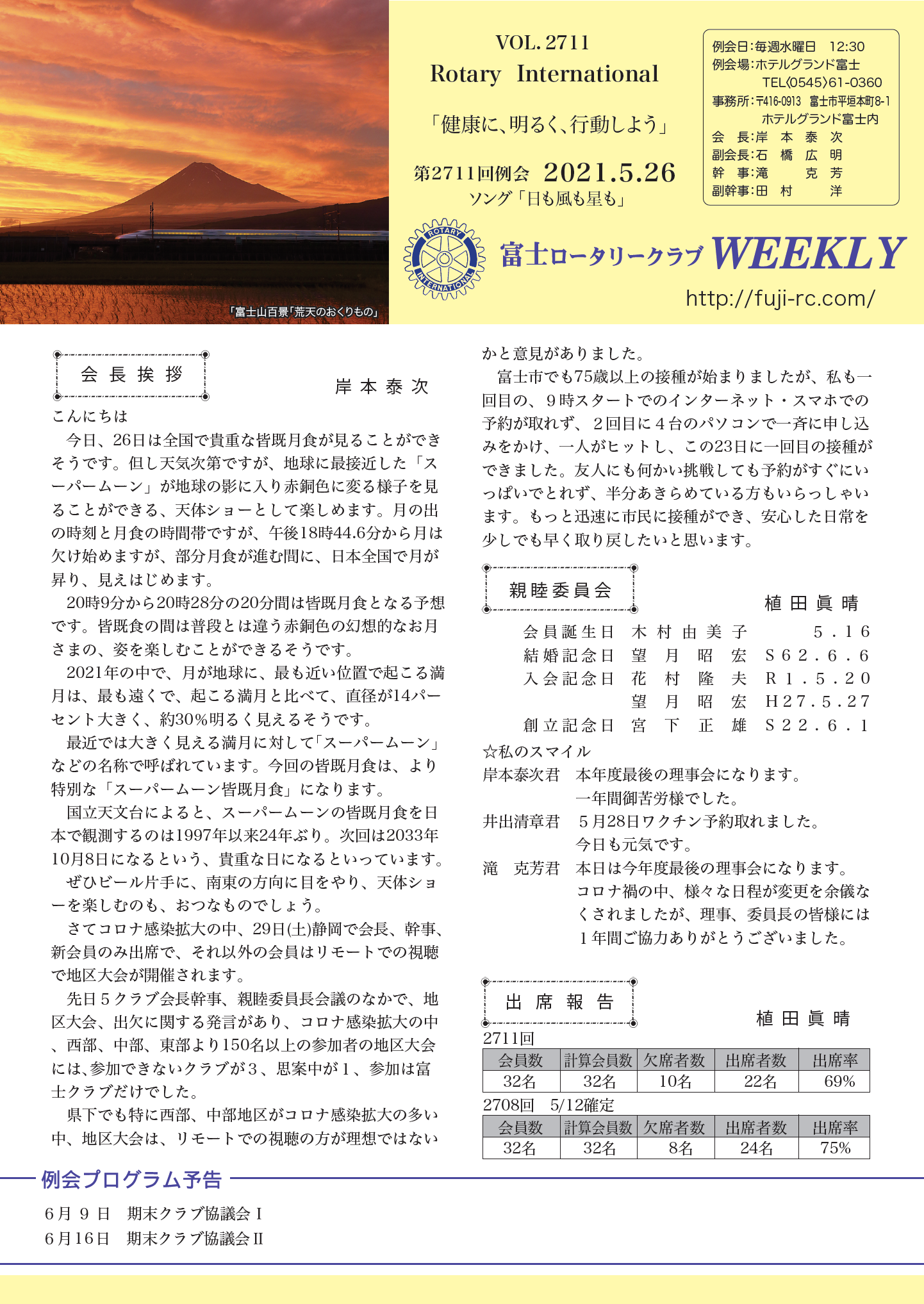 第2712回 例会 2021.6.9 |