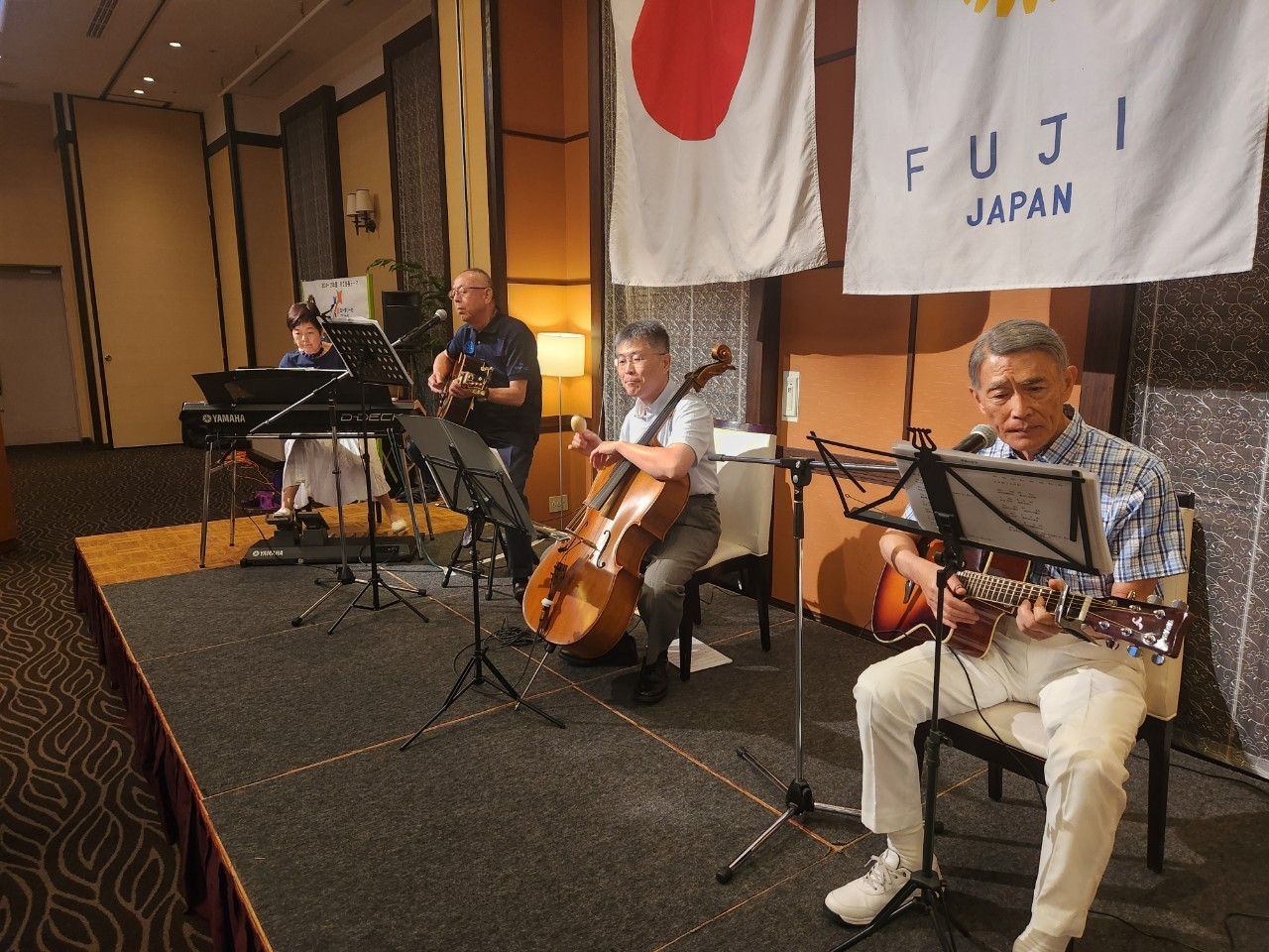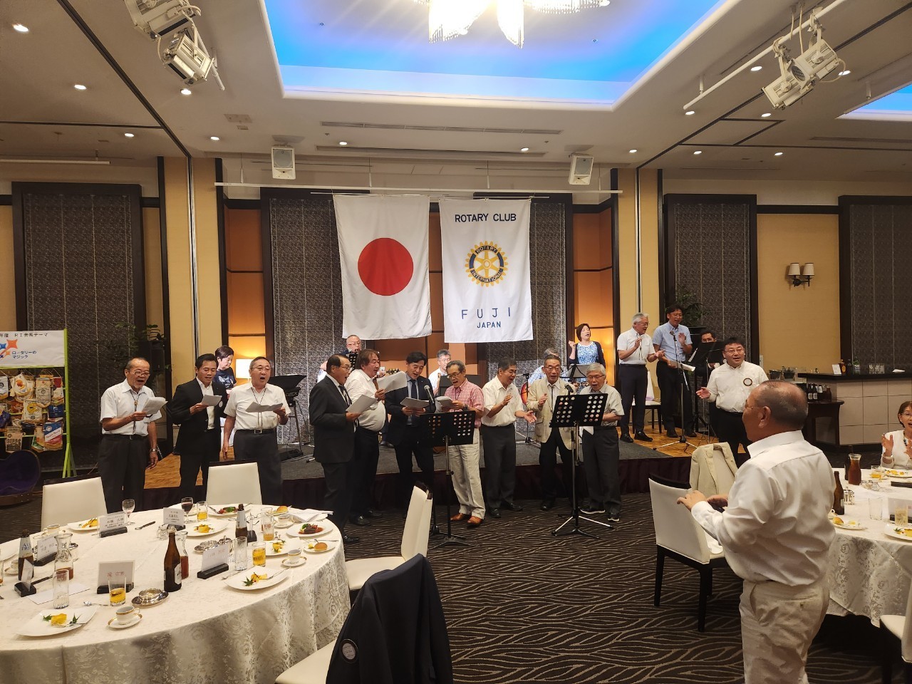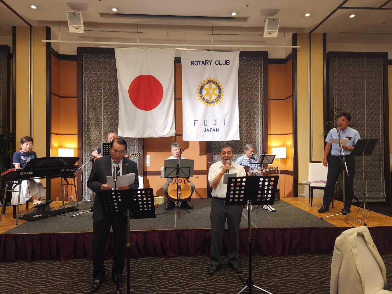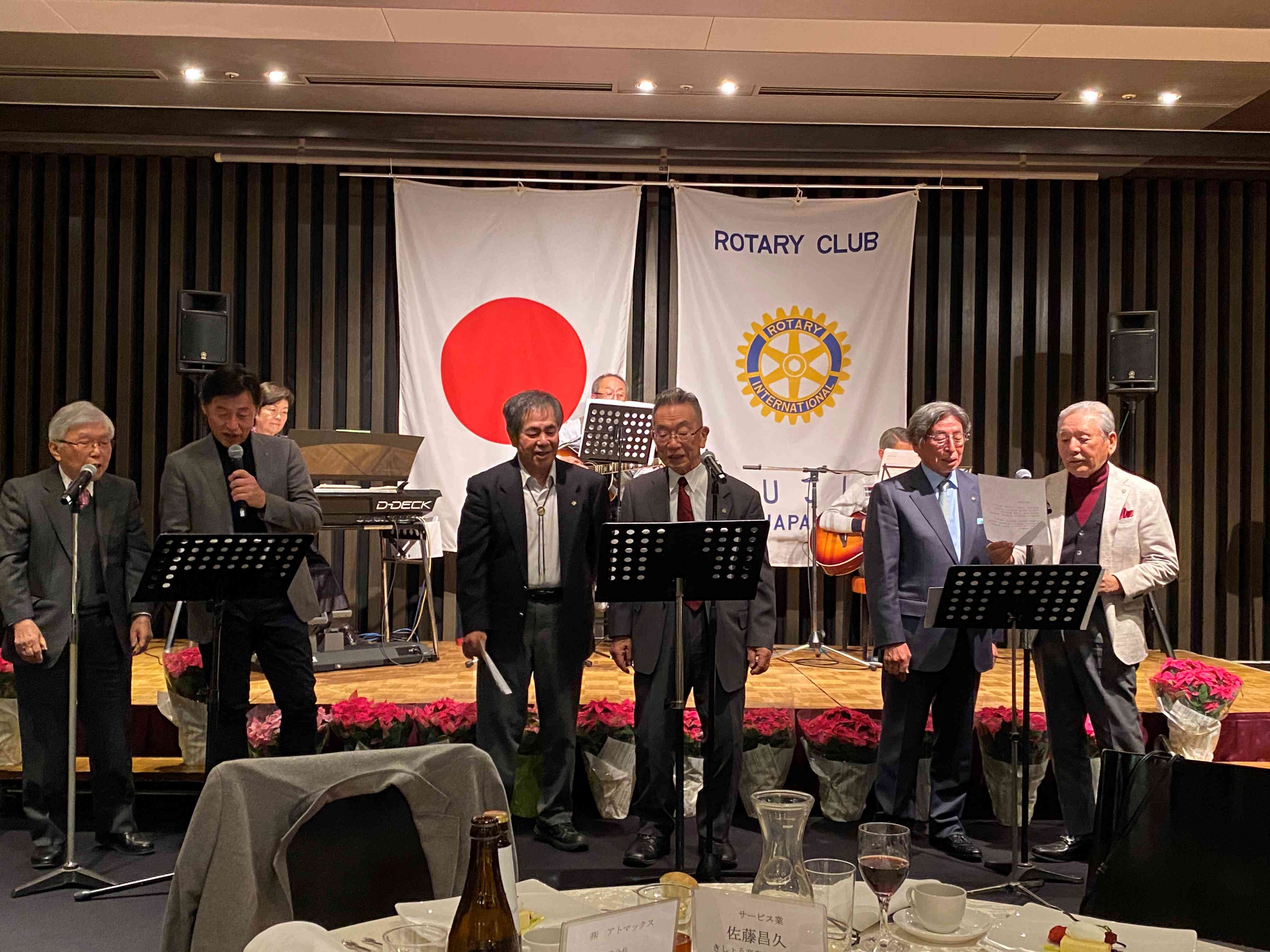 懇親会では、富士ロータリークラブ有志のメンバーで構成する「ザ・ロータリーズ」バンドが活躍。