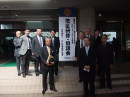 次年度会長・幹事・各委員長研修のための標記会合が4月18日(土)に甲府ロータリークラブをホストクラブとして甲府にて開催されました。富士地区3クラブでバスに便乗し、当クラブからは9名が参加し、新入会員の岩間さんも参加されました。