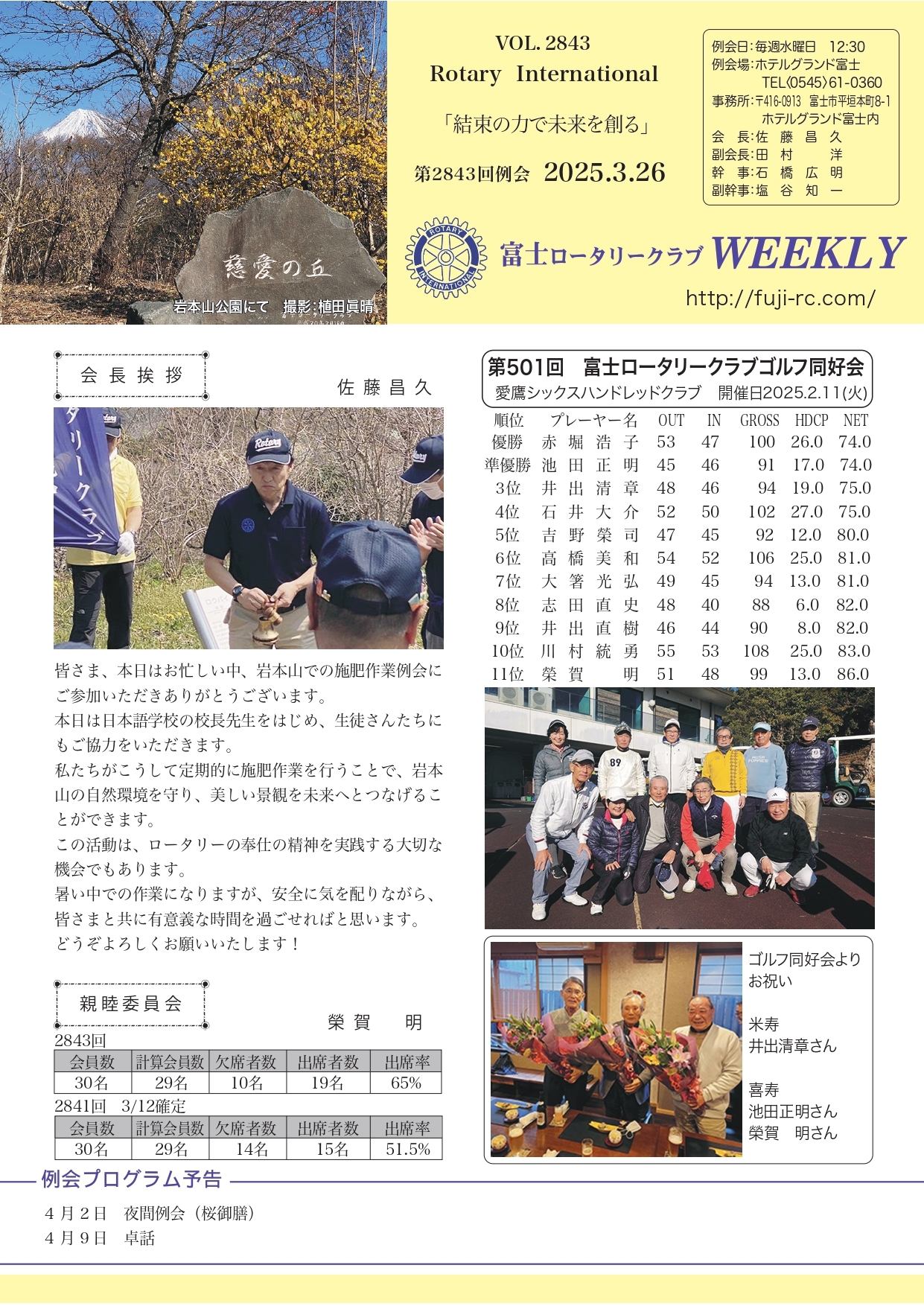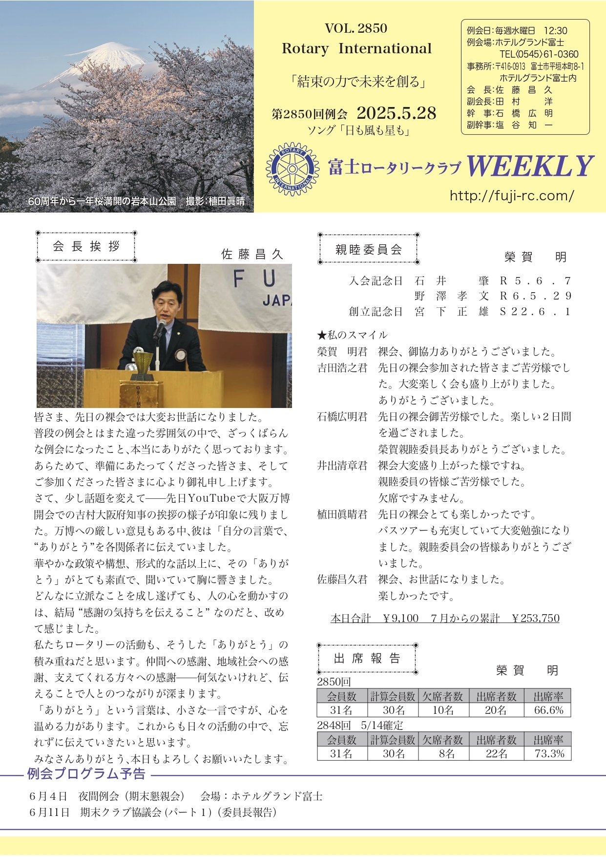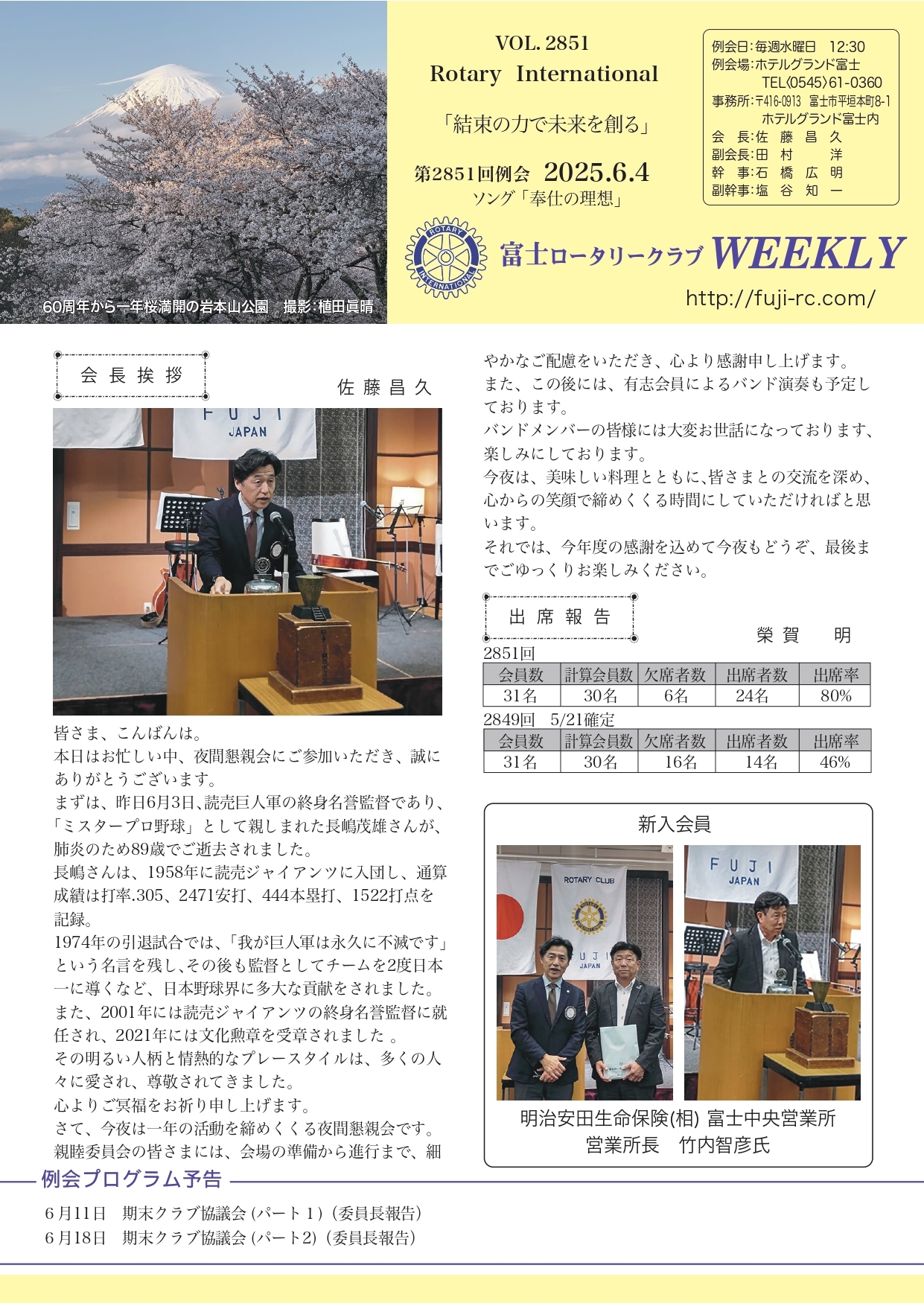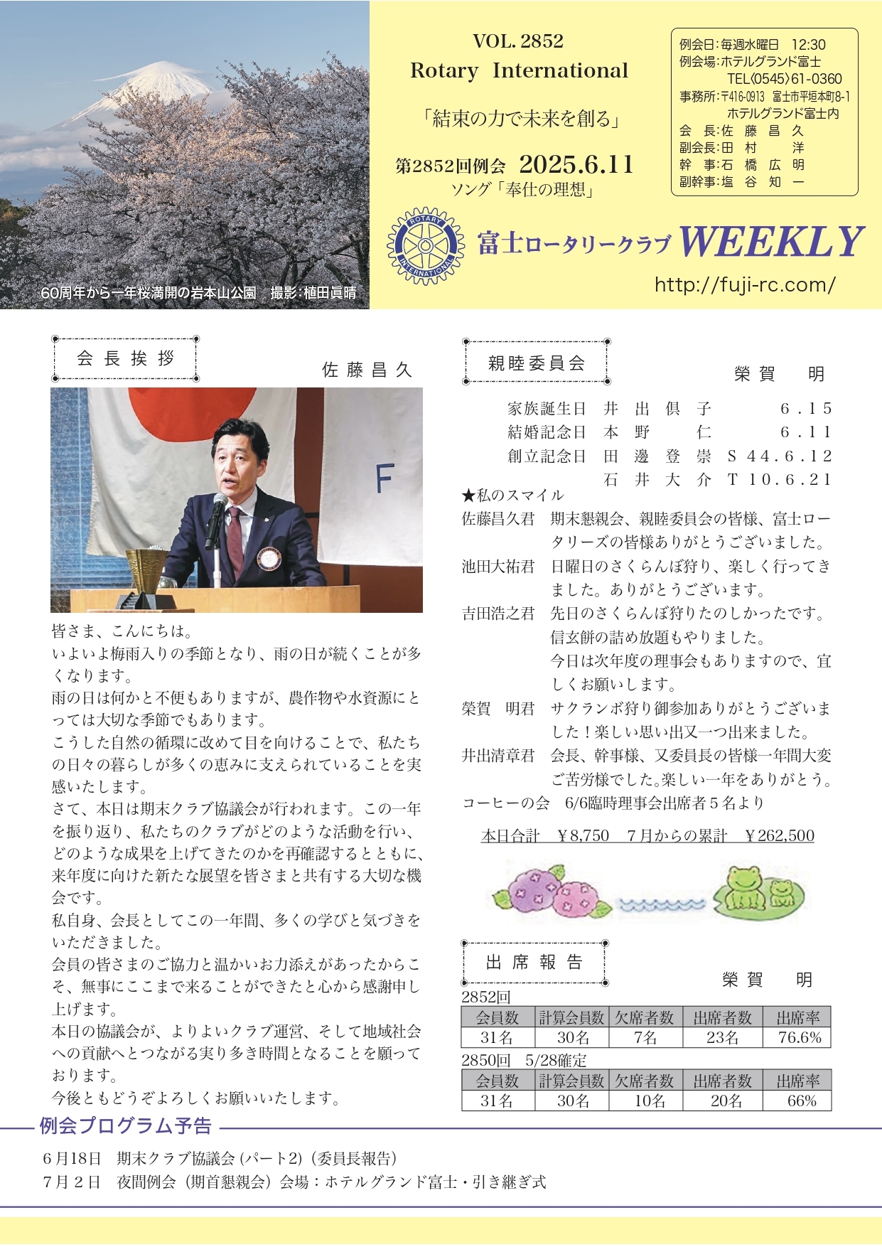 第2852回 例会 2025.6.11 |
