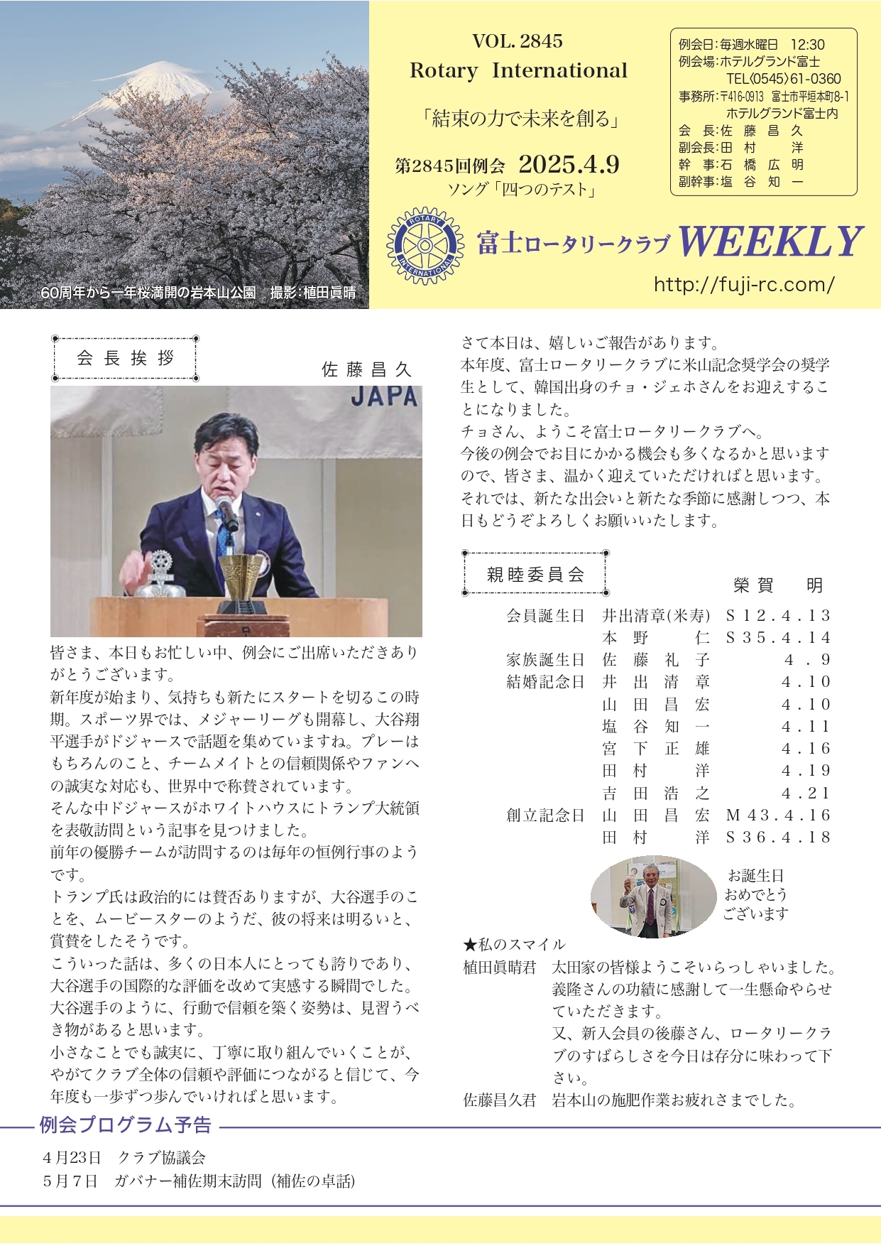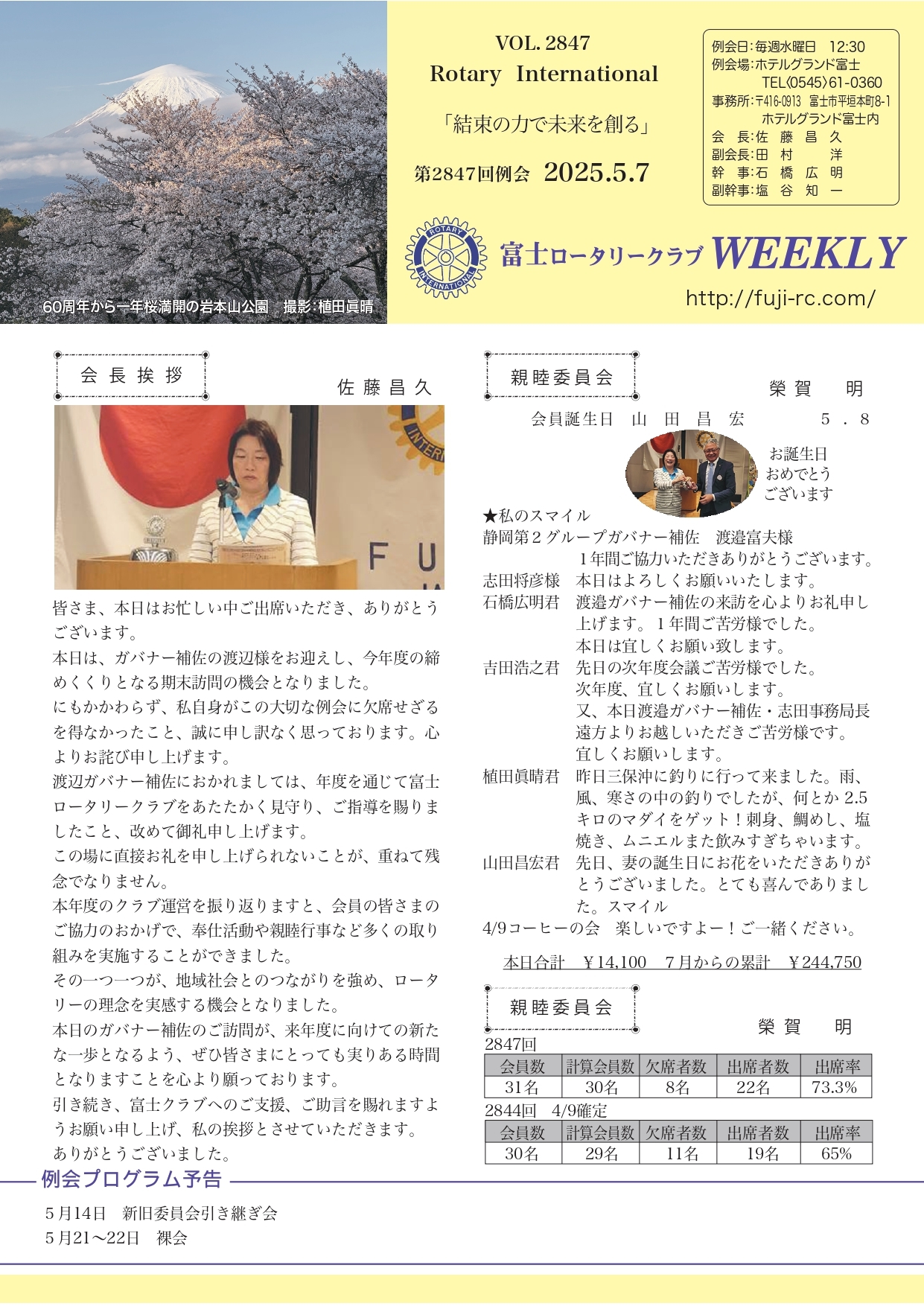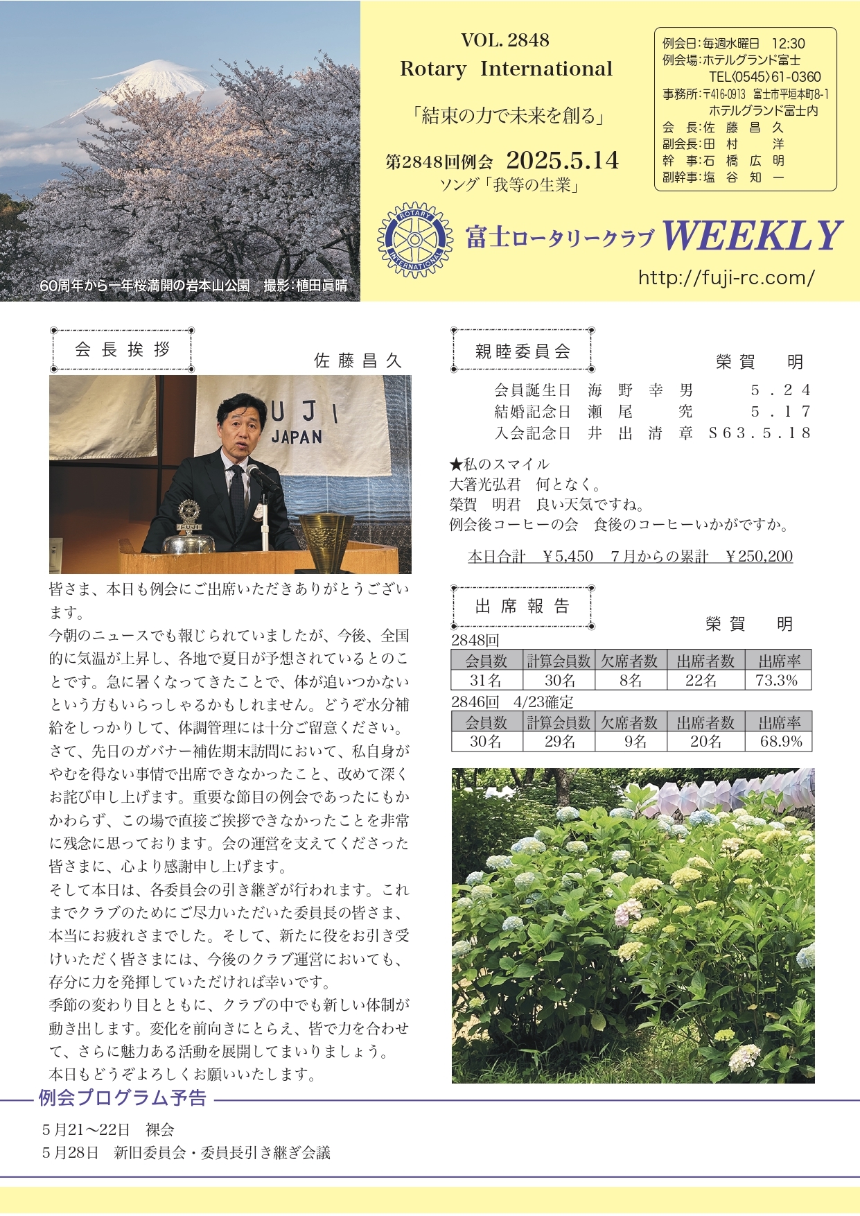第2848回 例会 2025.5.14 |