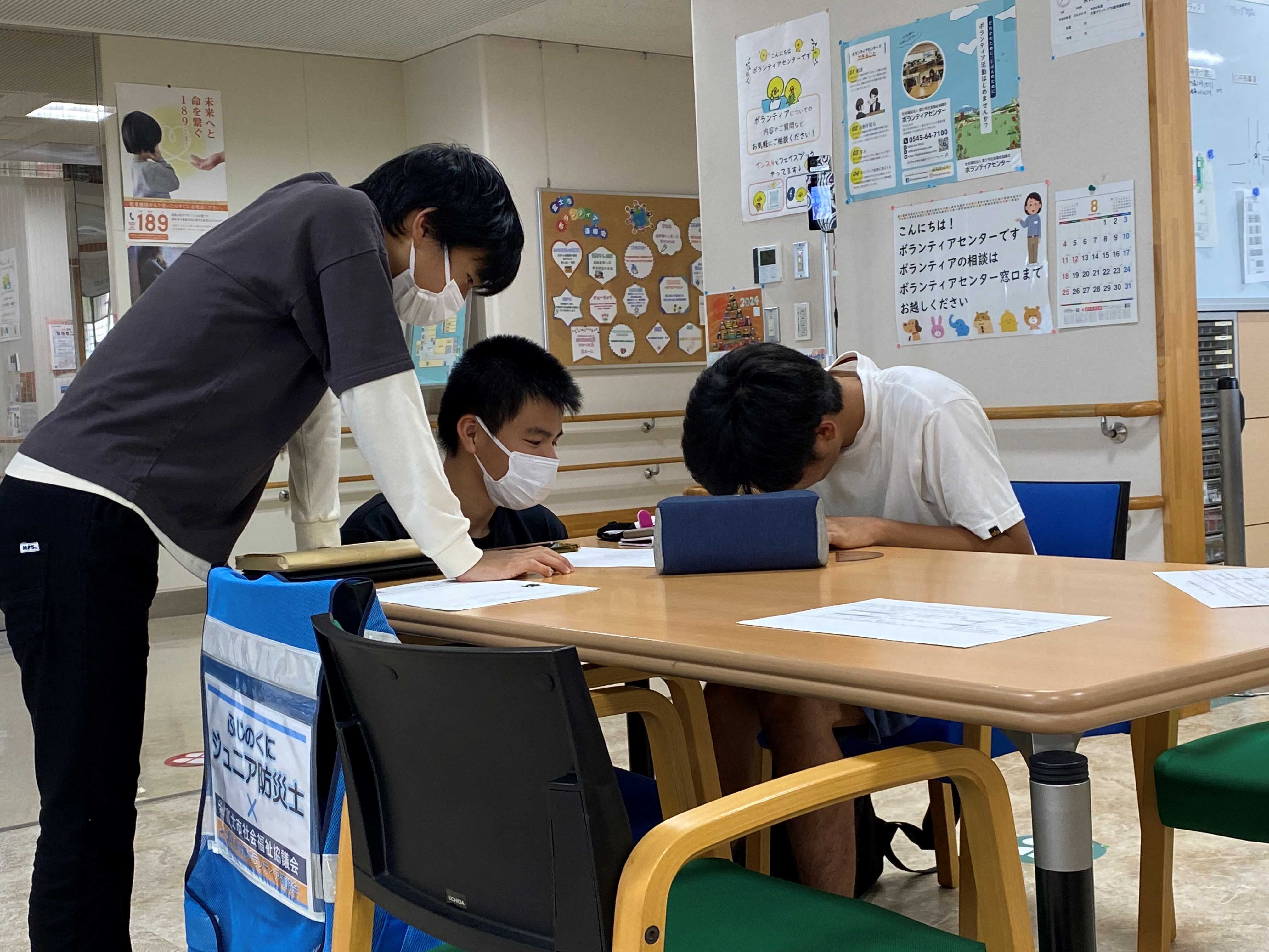 「ふじのくにジュニア防災士養成講座」を開催しました。富士市社会福祉協議会を中心に企画、静岡県と富士市から