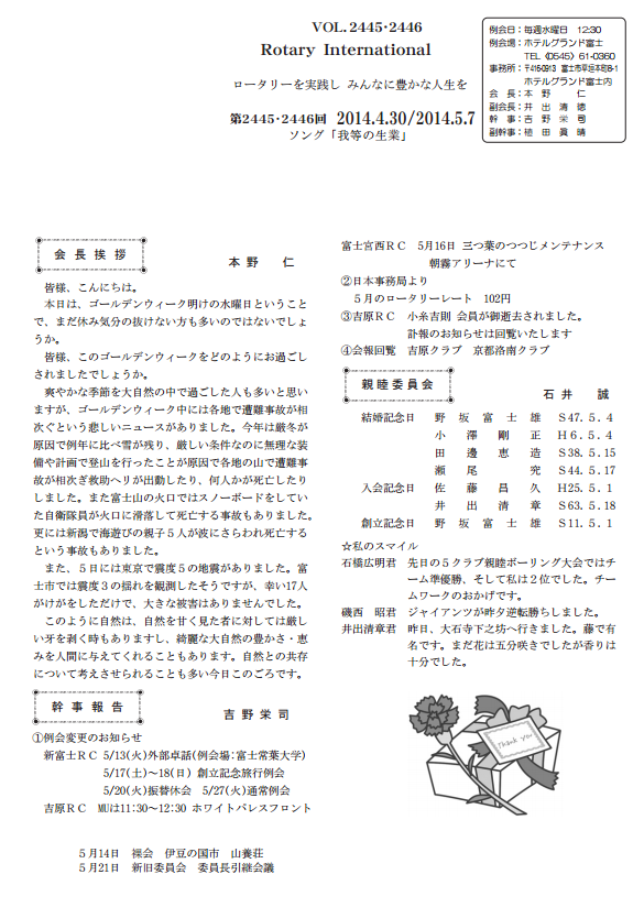 皆様、こんにちは。 先週は、数日日本各地で猛暑日が続いたと思ったら、一転して涼しくなりました。今日も雨が降っています が、低気圧と前線の影響で、今週月曜日以降、西日本から東北南部の広い範囲で雨が降り、気象庁は、九州から東北南部にかけて梅雨入りしたと見られると発表しました。気象庁によれば、この夏は南米・ペルー沖の海面温度が高くなるエルニーニョ現象が発生する可能性が高くその影響で太平洋高気圧の北への張り出しが平年より弱くなる見込みのため、梅雨前線の北上が平年より遅く、各地で梅雨明けが遅くなり、雨量も多くなる見通しとのことです。ゴルフを初め野外スポーツを楽しまれる方には残念なことです。